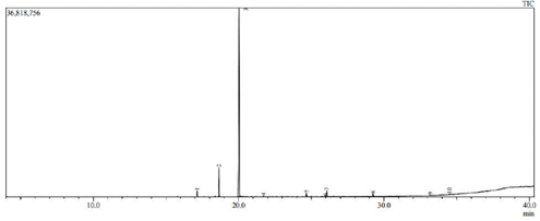 Figure 1: Retention time and peak level based on GC-MS analysis.