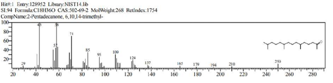 Figure 3: 2-Pentadecanone, 6,10,14-trimethyl- (C18H36O).