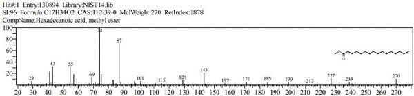 Figure 9: Hexadecanoic acid, methyl ester (C17H34O2).