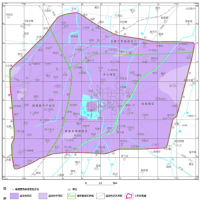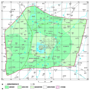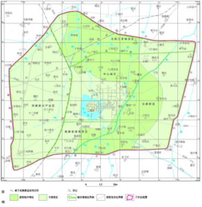 Medium suitability area: The medium suitability area is mainly distributed outside the central old city area, which is generally concave in shape, including Dengwang-Wulipu-Heguntun-Qianluo-Fujiafen-Dongwang-Qianhongmiao-Wanghumiao-Shanguntun-Fengzhuang-Zengzhuang within a line.