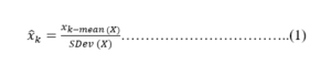 The SNV method normalizes the spectra by subtracting the mean of each spectrum and dividing by its standard deviation. As a result, after applying SNV, each spectrum will have a mean of 0 and a standard deviation of 1 (www.guifh.github.io). Each value xk ​ of the data x is transformed according to the following equation: