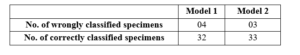 Table 4: Results of the classification of the unknown test specimens using SVMC models.