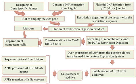 Figure 1: Overview of LsrA Denaturation with APRs. Direction of arrow indicate the work direction start from Gene specific primer designing and end with LsrA solubility with additive.