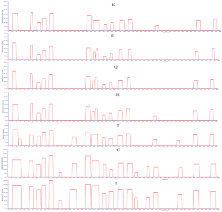 AGGRESCAN server calculates the aggregation propensity of each single amino acids according to its relative position. However, in order to cut down all the APRs and to know the best structural gatekeepers, 20 amino acids were replaced at the central hydrophobic cluster in each APRs.