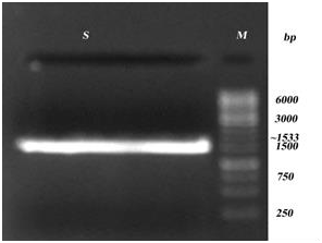 Supplementary Figure 1: PCR amplification of S. typhi- lsrK. Lane S: Amplified lsrK, Lane M- Marker.