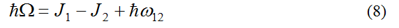 where L is the distance between the donor 1 and the acceptor 2 of an electron ( L is equal to the length of the polymethine chain — the main optical chromophore of polymethine dyes) [7-10,12], J1 is the binding energy of the electron on the donor 1 (electronic energy of the ground state of the dye) [7–10,12], m is the effective mass of the electron, and