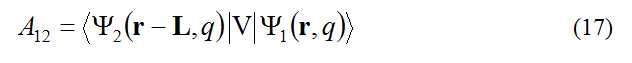 (r and q are electron and phonon coordinates) which, in view of taking the wave function Ψ2 in the Born-Oppenheimer adiabatic approximation Ψ2 = Ψ2BO and taking into account the entire dynamics of the transition only in the wave function Ψ1, can be called the amplitude of the transition on the acceptor A12a, we introduce into the theory also the amplitude